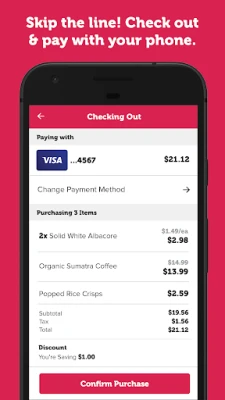 kip the checkout line with this free, easy-to-use app! Use your smartphone to scan while you shop, pay on your phone and avoid long checkout lines!