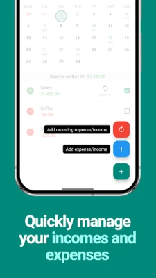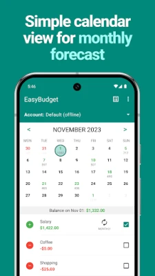• 📅 Monthly budget planner, the right way: Plan and manage your monthly budget efficiently with an intuitive calendar view. No infinite lists, categories or stuff you don't need. Just the simplest budgeting app.